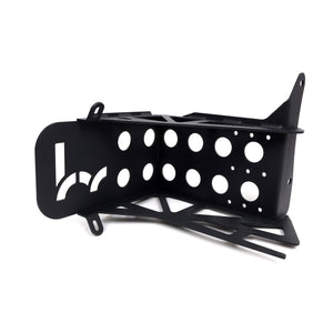 Make room for larger intakes or to clean up your engine bay by installing the Hybrid Racing battery relocation tray in front of the gearbox. This bracket also works with and is part of the Hybrid Racing 3.5 inch cold air intake kit.