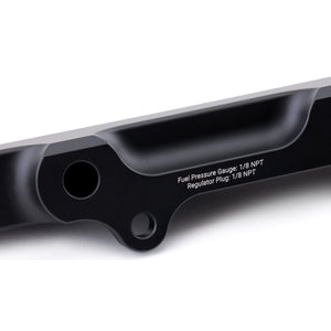 Each rail includes a 1/8" NPT hole that allows you to mount a fuel pressure gauge directly to your fuel rail. This puts the fuel pressure gauge in an easily visible spot, so you don't have to poke around in the engine bay just to see if you have fuel pressure. All the ports can accept a -8 ORB fitting in the inlet(s) and outlet, allowing you to run either the OEM B-Series FPR or use the supplied 1/8th NPT plug and the side -8ORB port.