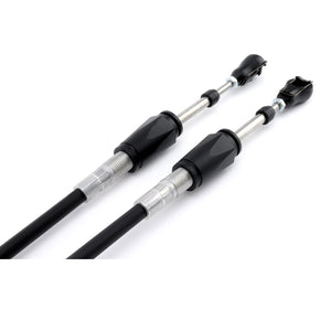 The Hybrid Racing cables are a performance upgrade replacement for stock OEM cables. The solid rod ends, 30% thicker cable core, and spherical bearings give the Hybrid Racing cables a firmer, tighter feel over OEM cables, resulting in fewer missed shifts and a more connected feel to the chassis.