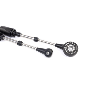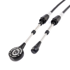 We created a cable to give people peace of mind and improved driving performance when they shift hard and during demanding racing applications, and the Hybrid Racing performance cables achieve this goal! Other notable features of the Hybrid Racing cables are spherical bearings, stainless steel push rods, and upgraded stainless steel swivel support tubes (oem are plastic) that are known to break on the OEM cables. All of the rod ends and mounting bushings are CNC machined 6061 aluminum, then black anodized before being laser etched with the Hybrid Racing logo and flair.