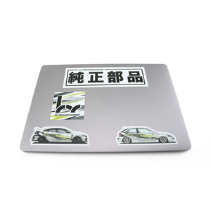 Stick the Hybrid Racing "Genuine Goods" Slap Sticker (8.5" x 2.75") anywhere you want to make a bold statement. The Hybrid Racing Livery Square Sticker (3" x 3") adds a pop of color and style to any surface, while the Hybrid Racing FK8 Type R Sticker (5" x 1.75") lets you proudly display your love for this iconic car model. And don't forget about the Hybrid Racing x BattleCraft EK Sticker (5" x 1.75"), perfect for anyone who loves a good collaboration.