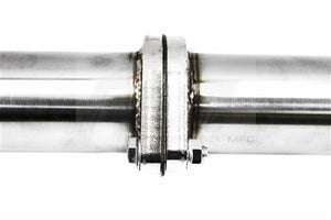 Private label Mfg. axle-back exhaust or track pipes are made of TIG welded stainless steel and weighs at a remarkable 13 lbs., compared to the stock brick of a muffler that weighs 26+ pounds.