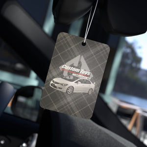 Elevate your driving experience with our custom-designed car air freshener, combining style and freshness in one perfect package. Infuse your vehicle with a lasting, invigorating aroma while adding a unique touch to your interior. Choose from three irresistible scents - Pine, New Car, and Black Ice- each crafted to keep your ride smelling fresh and inviting. Refresh your space, boost your mood, and make every drive a pleasure.